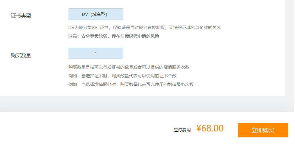 前段时间有人再问,用免费的SSL证书或者这个68元1年的证书,搭建微信小程序后端使用,可以吗?这个理论上是完全没有问题的,个人可以用,企业也是可以用的,不过一般有预算或者有实力的企业还是推荐购买好一点的SSL证书,这个定位的是个人测试使用的。阿里云其实有68元1年的SSL证书,这个性价比还是非常高的,个人觉得还是非常值...