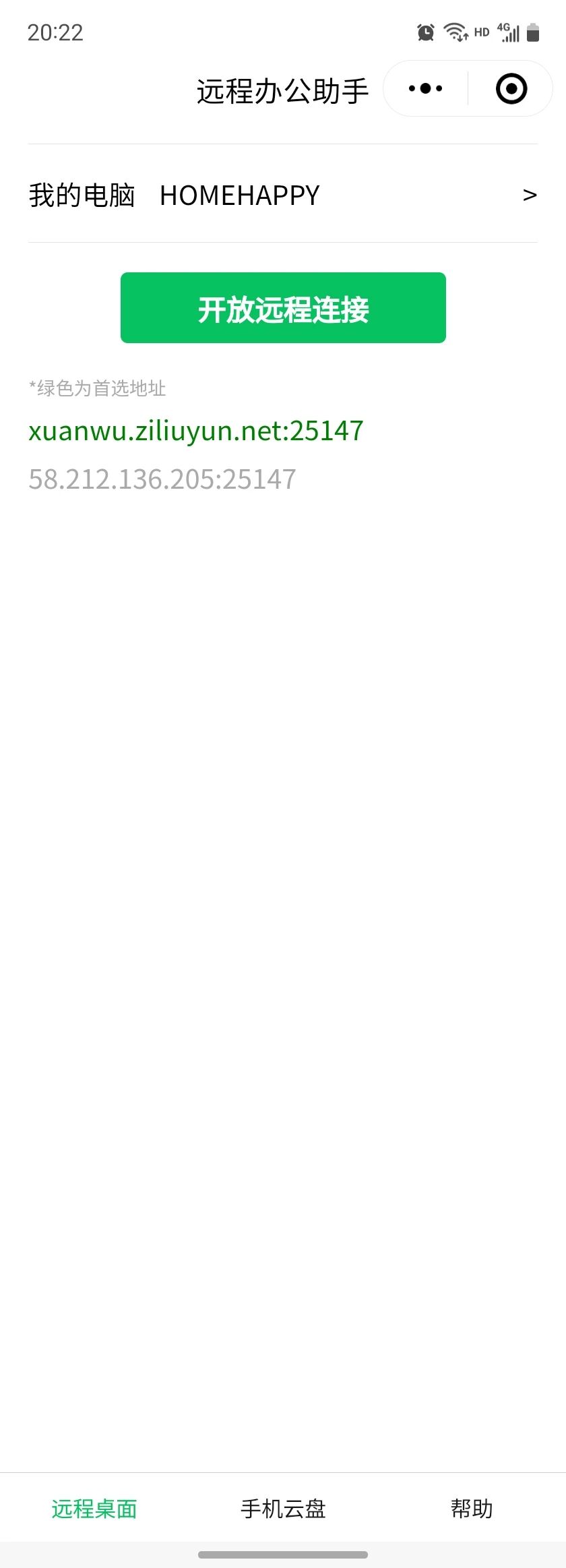 本软件支持通过外网远程控制内网电脑,用于远程访问内网电脑场景。1.软件下载下载地址https://ziliuyun.net/app/safedesktop.exe本地下载:safedesktop.rar2.软件运行重要提示:1、在杀毒软件中允许本软件运行软件首次运行时出现小程序二维码,请微信扫码后续根据应用界面操作,简...