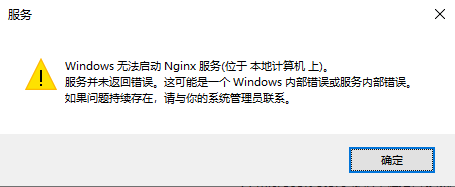 启动Nginx时提示错误:Windows无法启动Nginx服务(位于本地计算机上)。服务并未返回错误。这可能是一个Windows内部错误或服务内部错误。如果问题持续存在,请与你的系统管理员联系。如何解决?​Windows无法启动Nginx服务(位于本地计算机上)。服务并未返回错误。这可能是一个Windows内部错误或服...