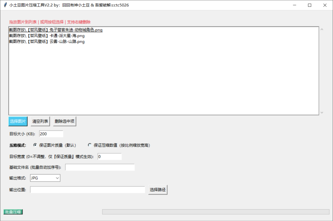 如果经常需要压缩图片,那拥有一款好用的图片压缩工具是很有必要的,网上有很多图片压缩工具可以选择,刚好小七最近逛论坛时又发现了一款,赶紧来分享给你们使用,实测很不错。小土豆图片压缩工具(电脑)软件由吾爱大佬原创,采用python编写,完全免费,单文件免安装,最大的特点就是支持将图片压缩到指定大小,支持批量压缩,支持拖入添...