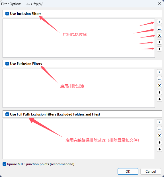 如果有一些文件不想备份,那么可以点击“Filter...”,设置过滤条件(具体设置方法自行测试体会):