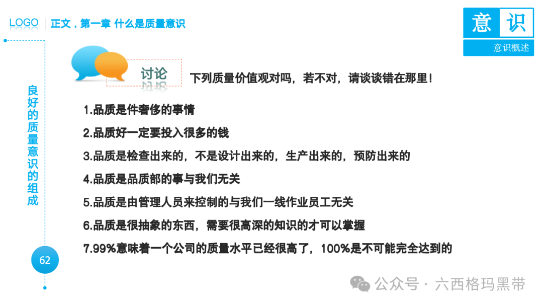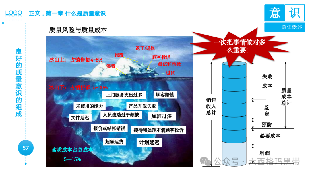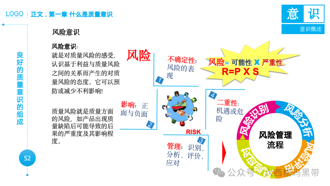 2. 影响认知:意识影响人们对事物的认知和判断。例如,一个质量意识强的员工会更敏锐地发现潜在的质量风险。