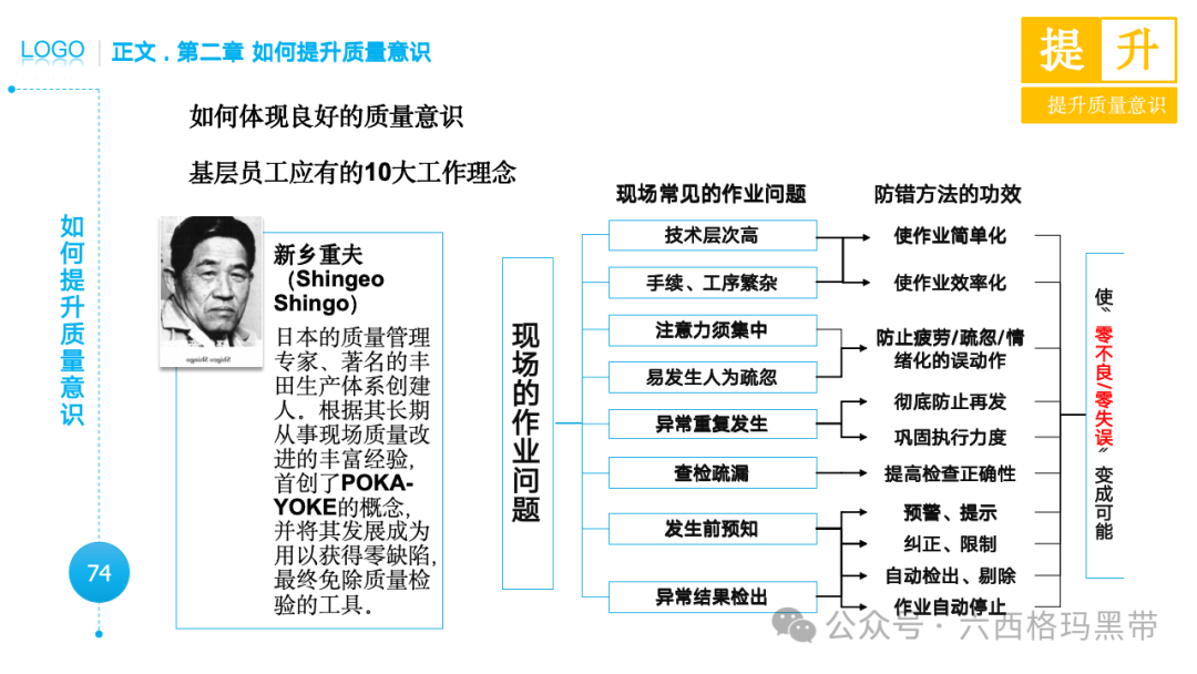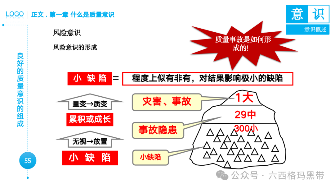 • 明白:意识还包含对事物的理解。员工不仅要识别出零件,还要明白它在产品中的作用,以及它对产品质量的影响。