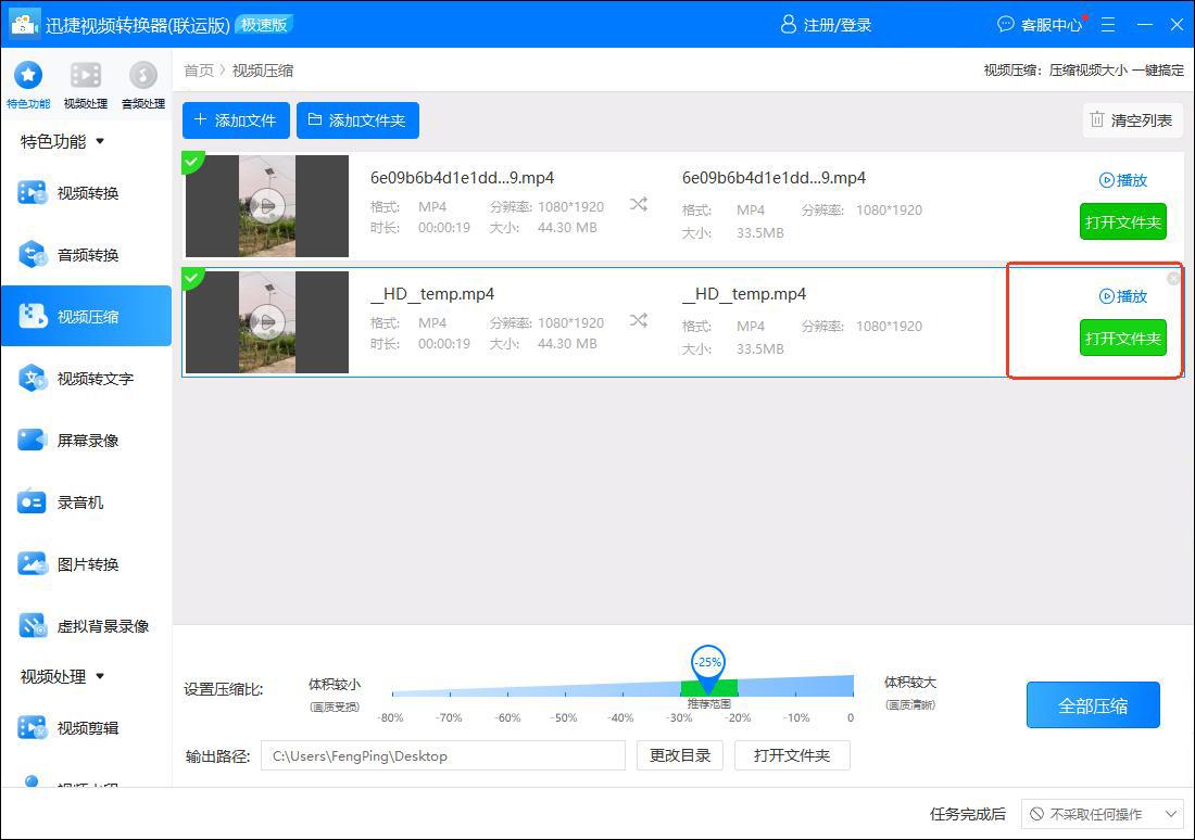 小伙伴们,在如今这个短视频横行、素材堆满硬盘的时代,视频压缩可太重要啦!每次想分享个超有趣的视频,或者整理下硬盘空间,却发现文件大得离谱,一压缩画质还变得惨不忍睹,是不是超崩溃?别担心,今天就给大家支几招,教你用5种方法,把视频压缩变小还不影响画质,从此告别乱压缩的苦恼! ![]() 一、迅捷视频转换器迅捷视频转换器它可不只是能压缩视频,还支持几乎所有主流视频格式的相互转换,像 MP4、AVI、MKV等格式转换,而且还有视频裁剪、拼接、添加字幕等实用功能。界面设计简洁明了,哪怕是视频处理小白,也能迅速上手。 使用步骤: ①进入软件主界面,点击“视频压缩”进入后,将需要压缩视频导入软件。 ![]() ②点击【压缩】设置视频压缩模式,或根据需求,调整视频的分辨率、帧率、比特率等参数。 ![]() ③参数设置好后,点击“全部压缩”在指定文件夹查看。 ![]() 2、Freemake Video ConverterFreemake 界面设计非常直观,操作步骤简单,新手用户也能轻松上手。支持众多视频和音频格式,不仅能压缩视频,还能进行格式转换,满足多样化的需求。 使用步骤: ①点击软件界面左上角的“添加视频”将视频文件添加到软件中。 ②在软件界面选择输出格式,如MP4、AVI等,点击“设置”对视频的分辨率等参数进行微调。 ③所有设置完成后,点击 “转换” 按钮,软件开始压缩视频。 ![]() 3、Any Video ConverterAny Video Converter除了视频压缩,还具备视频编辑、格式转换、下载视频等多种功能,是一款综合性的视频处理工具。可以将视频压缩成适合各种移动设备(如手机、平板)播放的格式,方便在不同设备上观看。 使用步骤: ①安装完成后,打开软件,选择要压缩的视频文件导入到软件中。 ②在软件界面的 “输出格式” 栏中,选择适合的输出格式。 ③点击 “设置” 按钮,对视频的分辨率、帧率、比特率等参数进行调整,进行合理设置。 ④设置完成后,点击“转换”即可在指定位置找到压缩后的视频。 ![]() 4、VideoProcVideoProc支持利用电脑的显卡进行硬件加速,大大提高视频压缩速度,节省时间。除了压缩,还能进行视频裁剪、合并、去水印等操作,满足多种视频处理需求。 使用步骤: ①点击软件界面左上角的 “Video” 按钮,选择要压缩的视频文件导入到软件中。 ②在软件界面右侧,有多种压缩模式可供选择,可以根据需求选择。 ③点击“Option”对视频的分辨率、帧率、比特率等参数详细调整,以达到理想的压缩效果。 ④所有设置完成后,点击“RUN”等待压缩完成,压缩后的视频会保存在指定路径。 ![]() 5、Movavi Video ConverterMovavi Video Converter界面设计简洁美观,操作流程清晰,同时,能够快速完成视频压缩任务,节省用户时间。在压缩视频的同时,还可以对视频进行简单的编辑,如裁剪、旋转、添加字幕等。 使用步骤: ①安装完成后,打开软件,添加媒体文件选择要压缩的视频文件。 ②有多种输出格式可供选择,根据压缩目的选择合适的格式。 ③点击 “设置” 按钮,对视频的分辨率、帧率、比特率等参数进行调整。 ④设置完成后,点击“转换”视频会保存到指定的文件夹中。 ![]() 这5种实用的视频压缩方法就全部分享给大伙啦!往后再碰上视频占内存、传输慢这些麻烦事儿,别慌,按照这些方法来,保准能把视频大小降下来,还不咋影响画质,大家赶紧去试试吧! 该文章在 2025/8/12 10:18:46 编辑过 |