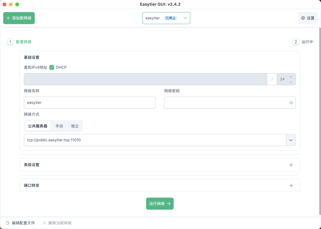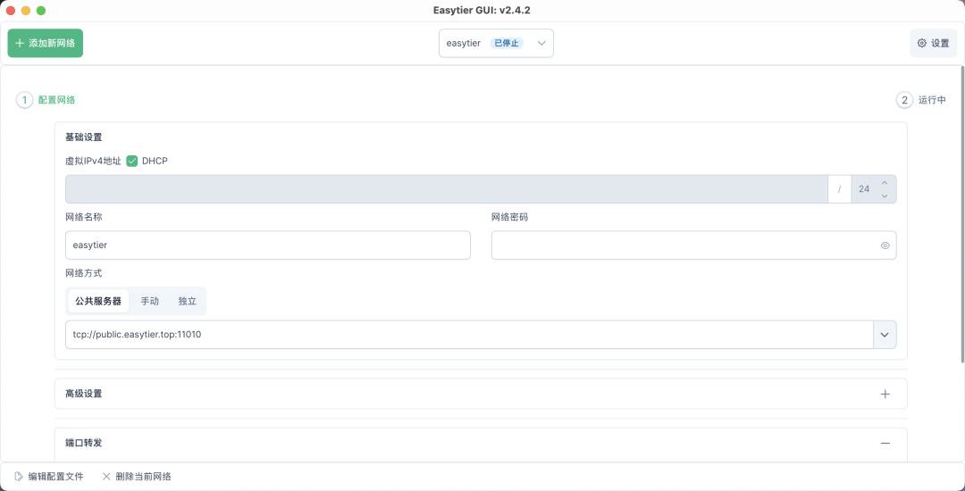 EasyTier 支持使用共享公共节点进行快速组网。
