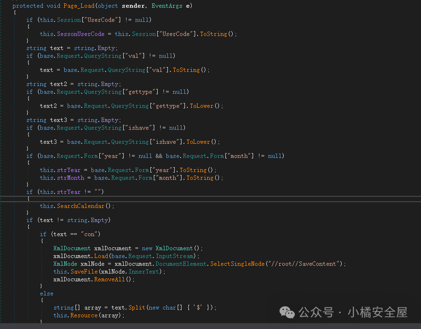 漏洞分析:在 bin 目录下查找 JHSoft.Web.Calendar.dll 将其进行反编译后找到 XmlPage的处理逻辑