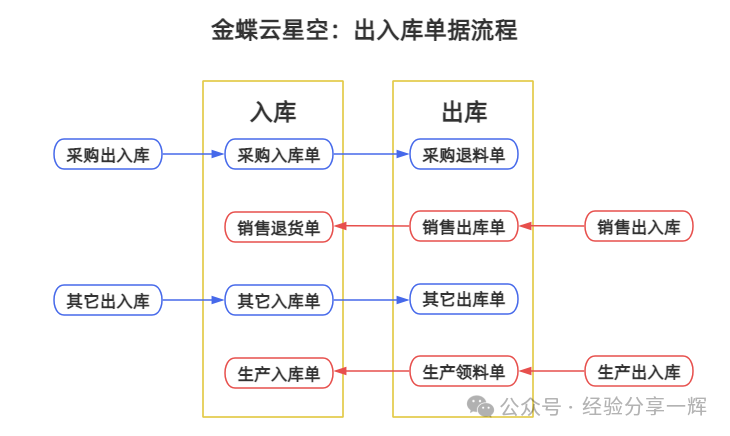这章讲解(库存管理)操作。 1.出入库单据流程讲解; 2.库存控制单据讲解; 3.库存关账与报表查询讲解; 金蝶云星空:出入库单据流程 常用的四种出入库单据流程: 外购入库:采购入库单--采购退料单; 销售出库:销售出库单--销售退货单; 其它入库:其它入库单--其它出库单; 生产入库:生产领料单--生产入库单; 操作都一样,用(下推)单据或(关联)上联单据。