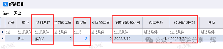 库存锁库:把(物料),按数量和日期锁住,不给出库。