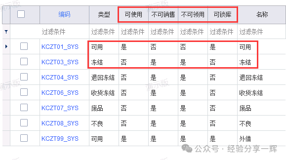 库存状态转换单:把(物料)的状态转换,不同的状态有不同的作用。(如:可用状态,可使用,可锁库,冻结状态,不可销售,不可领用)