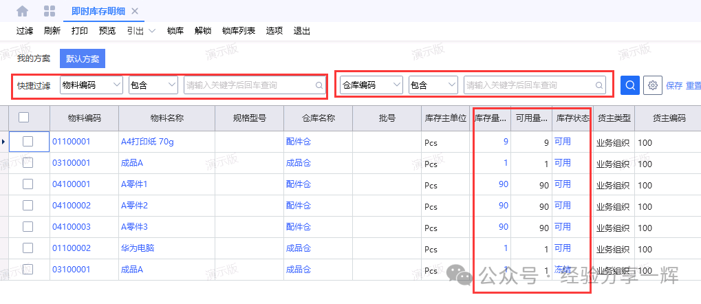 即时库存:查看(物料)实时库存的数量。 即时库存明细:查看(物料)库存实时数量和状态。