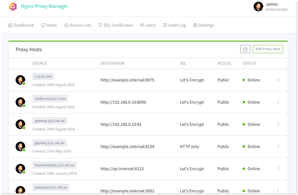 ![]() ![]() 自动化 SSL 证书:内置 Let's Encrypt 支持,可以为你的域名一键申请免费 SSL 证书,并且能够自动续期。再也不用操心证书过期的问题了,省心省力。如果你有自己的商业证书,它也支持上传和管理。 访问控制与权限:可以创建访问列表(Access Lists),限制哪些 IP 地址或者用户可以访问特定的代理主机。还支持基本的 HTTP 用户名密码认证,为你的服务多加一层保护。 支持 WebSocket 和 HTTP/2:对于需要 WebSocket 通信的应用,或者想开启 HTTP/2 提升网站加载速度,Nginx Proxy Manager 都能很好地支持。 Docker化部署:官方推荐使用 Docker Compose 进行部署,简单快捷,环境隔离,不污染宿主机。对于喜欢容器化部署的朋友来说,简直是绝配。 最推荐、也是最简单的方式,当然是 Docker 啦! 只需要创建一个 docker-compose.yml 文件,把官方的示例复制进去, 稍微改改数据卷的映射路径(如果你有特殊需求的话),然后在终端里 cd 到那个目录,执行 等它跑起来之后,用浏览器打开你服务器的 IP:81(默认的管理端口是 81),就能看到登录界面了。 默认的管理员账号和密码在官方文档里也有说明(通常是 admin@example.com 和 changeme),登录进去就可以开始你的可视化 Nginx 配置之旅啦! 阅读原文:原文链接 该文章在 2025/9/1 10:20:25 编辑过 |