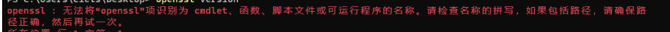 默认的Windows系统是不带openssl功能的,因此当需要生成密钥或证书时需要先安装openssl库。 否则报错 openssl : 无法将“openssl”项识别为 cmdlet、函数、脚本文件或可运行程序的名称。请检查名称的拼写,如果包括路径,请确保路径正确,然后再试一次。