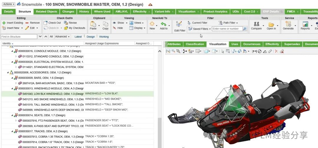 - 从BOM结构上看不出来系统的规划和功能的设计,可能一个功能因为功能设计方式不同,分布在不同组件下,因此若设计变更时,很难准确知道组成结构和涉及零部件的数量,确保分析完整性;