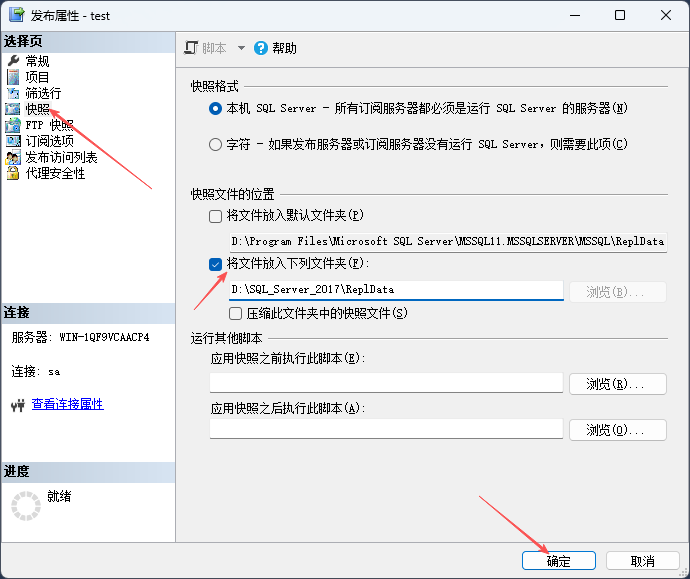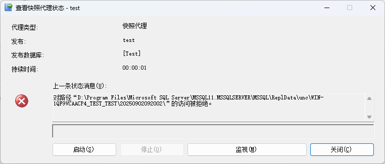 五、检查右键发布--查看快照代理状态,查看是否运行成功。如果出现以下问题: ![]() 解决方法:右键发布--属性--快照--将快照的位置改为自定义 ![]() 重新启动发布,解决 ![]() 如果还有别的什么问题,也可以打开监视查看具体报错信息