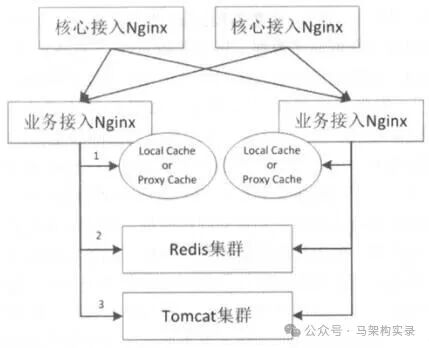 第一步先读取Redis集群。如果不命中,则回源到Tomcat集群(其会调用数据库、服务总线获取相关数据) 来获取相关数据。redis集群会进行多机房主从同步,各自机房读取自己机房的从redis集群,如 下图所示。