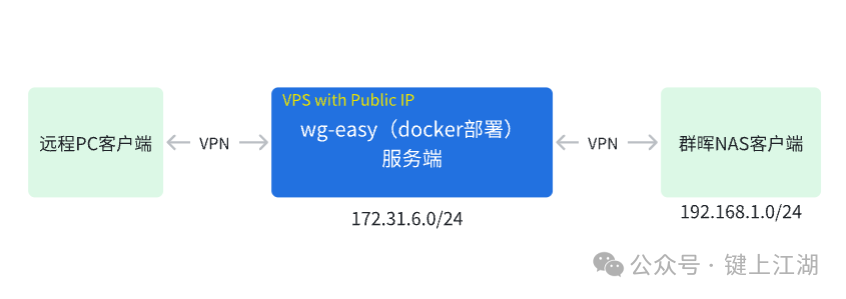 - 1. wg-easy 作为 WireGuard 服务端,部署在 VPS 上或家带路由上(适合有公网IP条件的用户)。