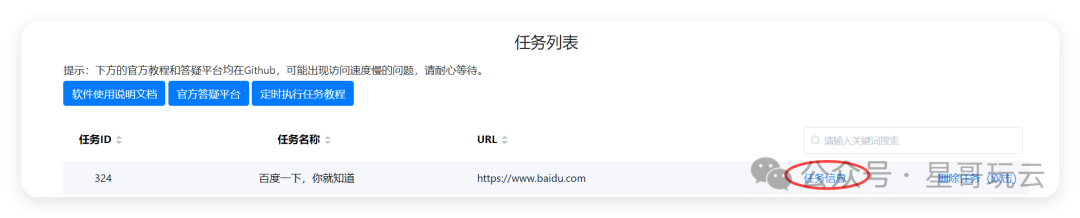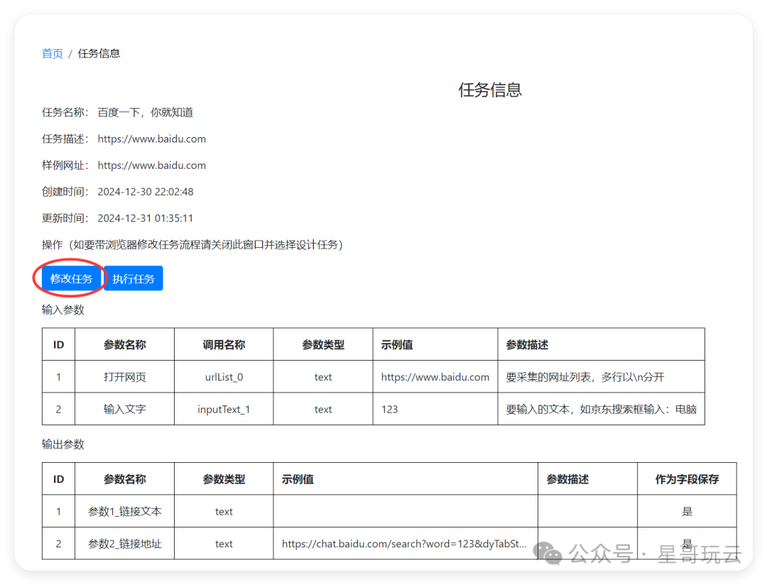 查看示例任务1.点击“查看/管理/执行任务”主要看看作者给到的实例,来理解
