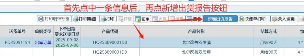 点晴模切ERP-送货单明细界面跳转到新增出货报告界面-操作教程