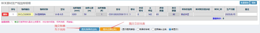 4.然后确认无误后,根据情况选择“提交制单待出库”或者“提交立即出库”