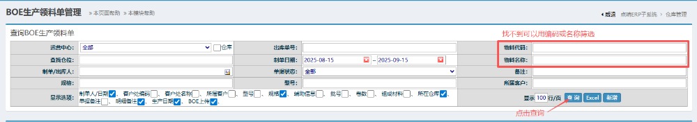 1.进入ERP系统之后,在左侧功能菜单里找到“BOE定制”,点击“正常加工”,找到“新增原材发产线出库”