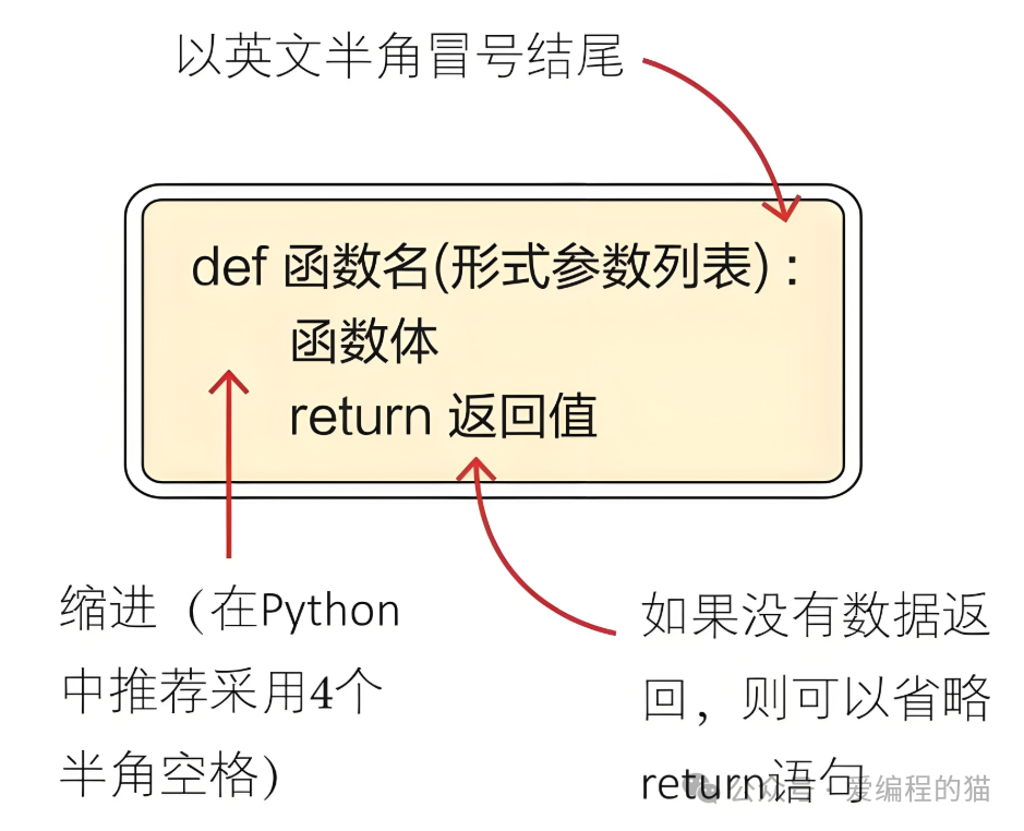 自定义函数的语法格式如下: 以英文半角冒号结尾