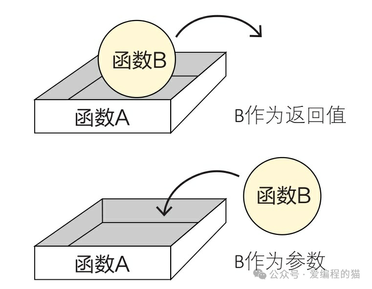 函数类型的数据与其他类型的数据是一样的,任意类型的数据都可 以作为函数返回值使用,还可以作为函数参数使用。因此,一个函数可 以作为另一个函数返回值使用,也可以作为另一个函数参数使用。