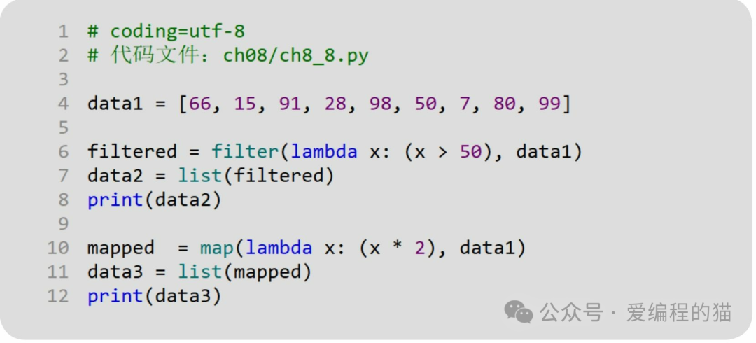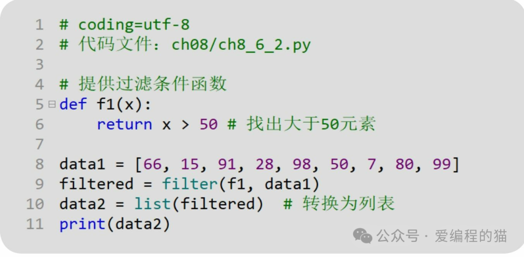 在Python中定义了一些用于数据处理的函数,如filter()和map( )等。我们先介绍filter()函数。