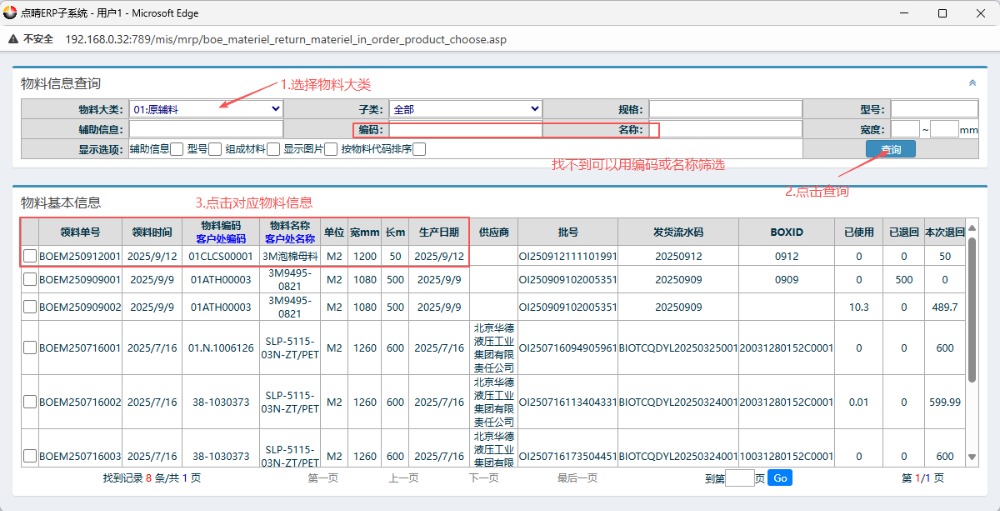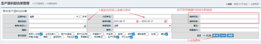 点晴模切ERP-BOE生产退料回仓单流程