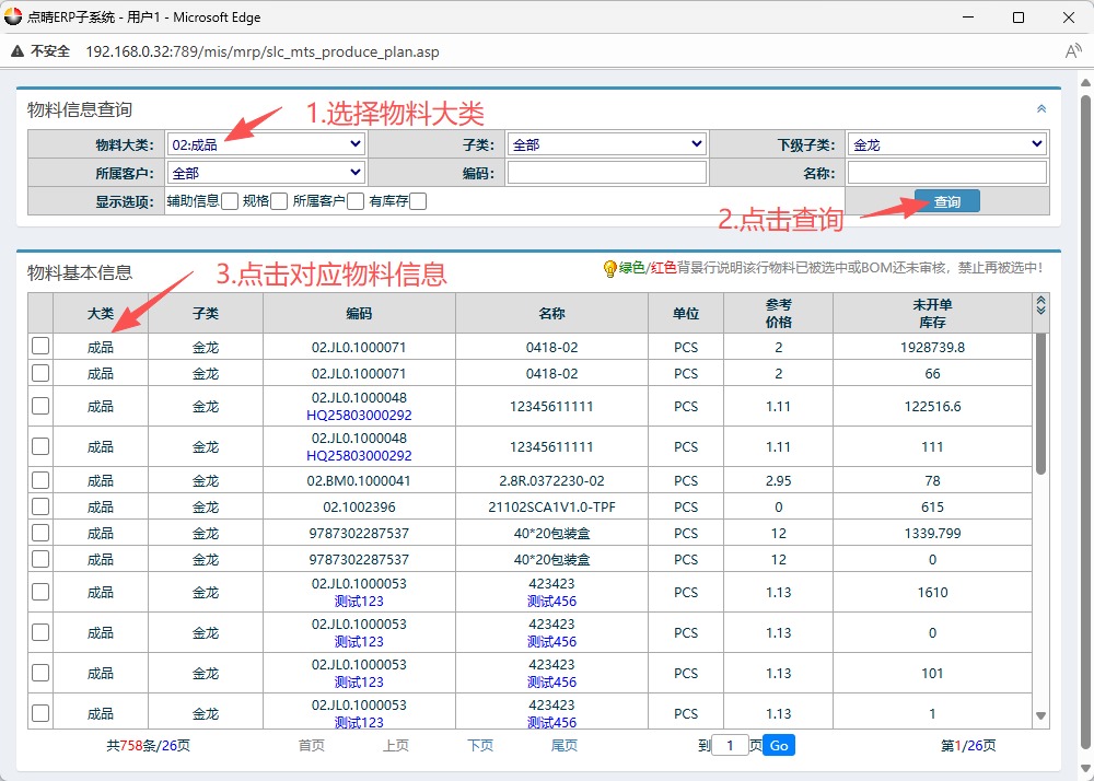 4.选好物料后,按图操作:填写排产量,填写日期,然后点击提交。