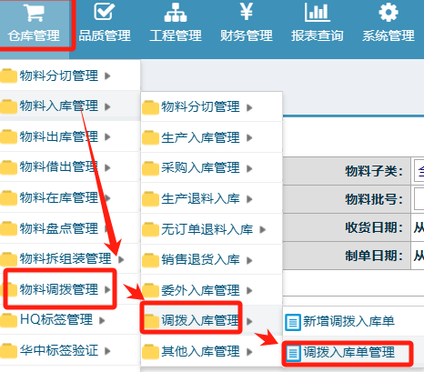 :点晴ERP-调拨入库单-作废操作![]() 点击进入 如下图:
