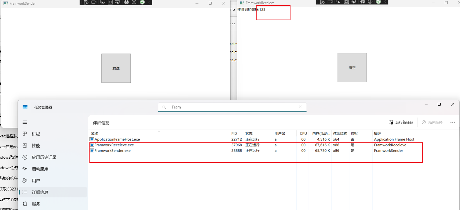 3、发送端是管理员权限,接收端是 普通权限,是可以接受到数据