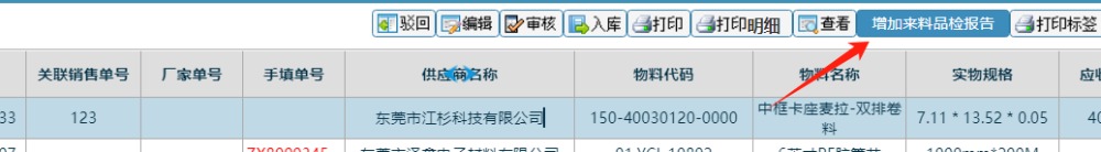 点晴模切ERP-新增来料品检报告-操作步骤