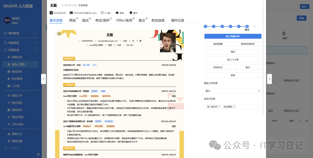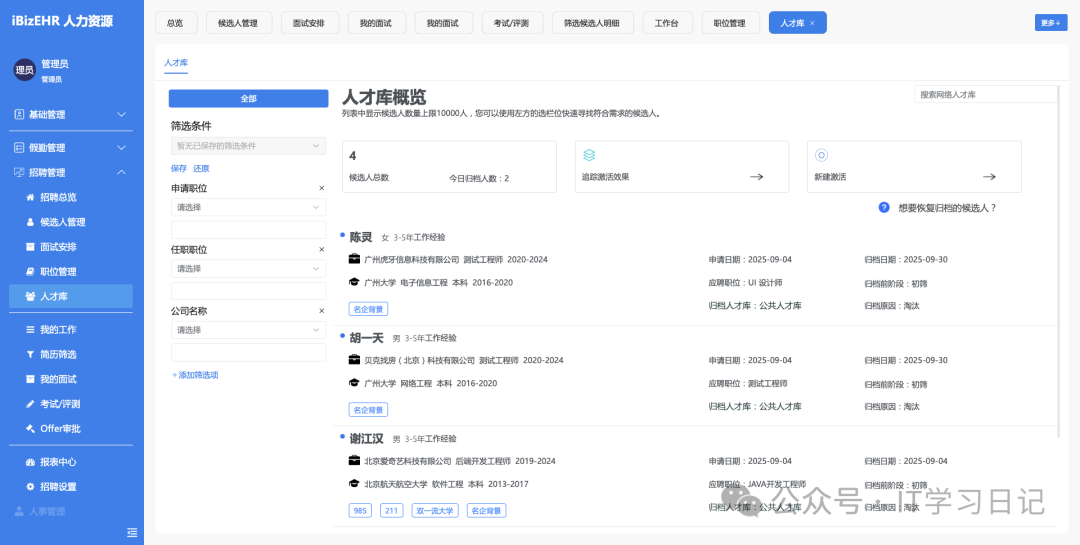 招聘管理:覆盖社招、校招、内推、猎头管理等场景,让HR获得更高效的招聘体验、更便捷的协作体验,让管理者获得招聘数据洞见。让招聘降本增效的同时,树立企业在候选人心目中的专业形象。