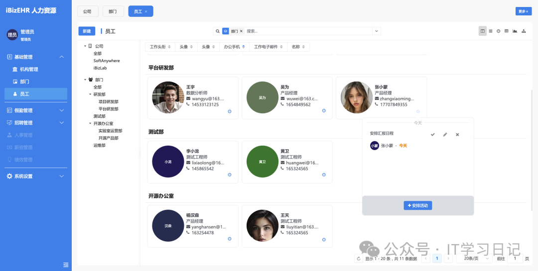 系统功能覆盖从招聘入职到离职全流程管理,支持多组织架构、多岗位配置、员工档案管理、薪资计算、绩效考核、考勤统计等核心功能,企业可基于此快速搭建、定制和部署属于自己的人力资源管理系统,实现人力资源信息化、流程自动化、管理智能化。