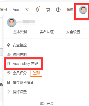 上面箭头位置有三个参数需要填写,其他不用理会,这三个参数需要先在阿里云官网(http://www.aliyun.com)进行登录设置,登录后在用户账号中可以获取到accessKeyIdaccessKeySecret