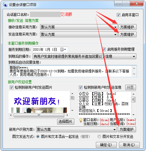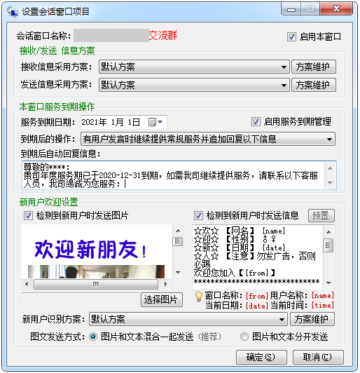 5、聊天窗口中新用户加入时自动发送欢迎图片/文本信息;