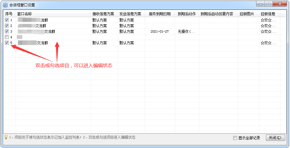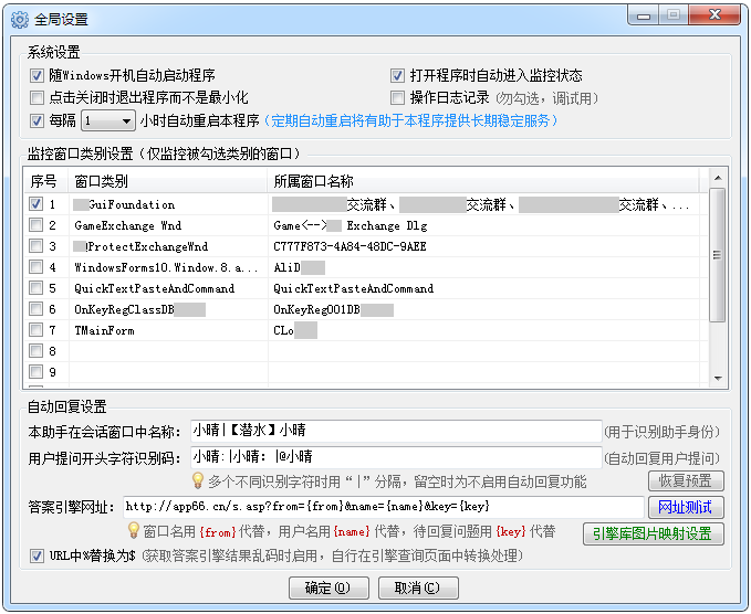 1、本软件运行时,需要在聊天软件中打开所有需要进行自动处理的相应会话窗口,本软件只能对已经打开的窗口进行监控处理,未打开的窗口无法自动处理。