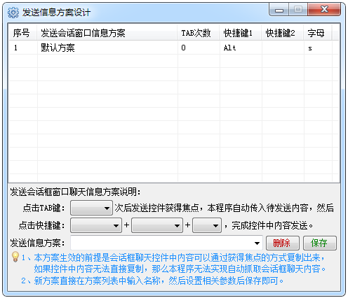 用户可以自主设定参数来自动完成聊天软件会话窗口中内容的抓取、自动回复、新用户判断方法等,并且支持智能答案搜索引擎库后台,用于精确智能回复各类聊天软件中用户提出的各种问题。使用者也可以使用本程序主动发送图片和文本信息到指定的聊天窗口,也支持批量发送图片和文本信息到多个聊天窗口,快捷完成通知和祝福语等发送需求,简要功能清单如下: