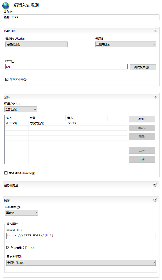 选择网站下的站点名称,双击打开 “URL 重写”。如下图所示: