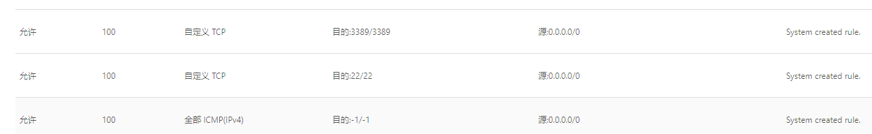 2、阿里云服务器默认是没有配置外网访问的,默认只开启了CMP协议、SSH 22端口、RDP 3389端口三个端口:
