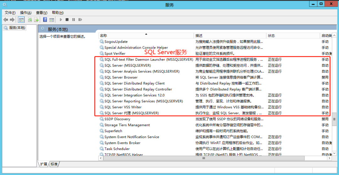 找到所有 SQL Server 的服务并全部停止 (不同的版本可能会有区别)