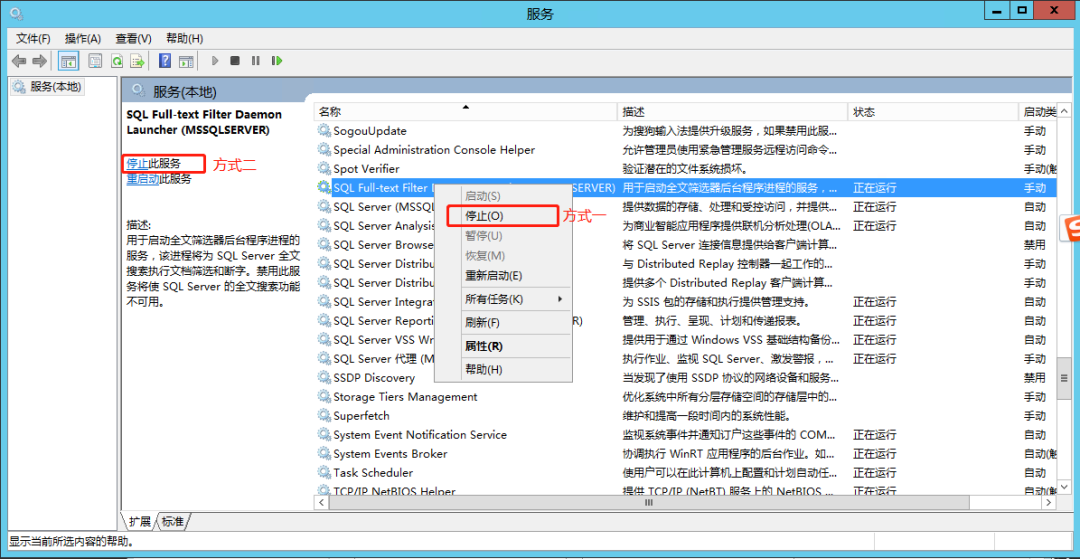 一、停止 SQL Server 服务