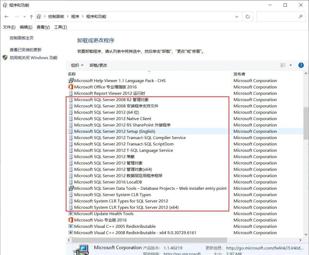 注:一些版本的 SQL Server 如果还单独安装了 SQL Server Management Studio (SSMS) 管理工具,那么这个也要一起卸载掉