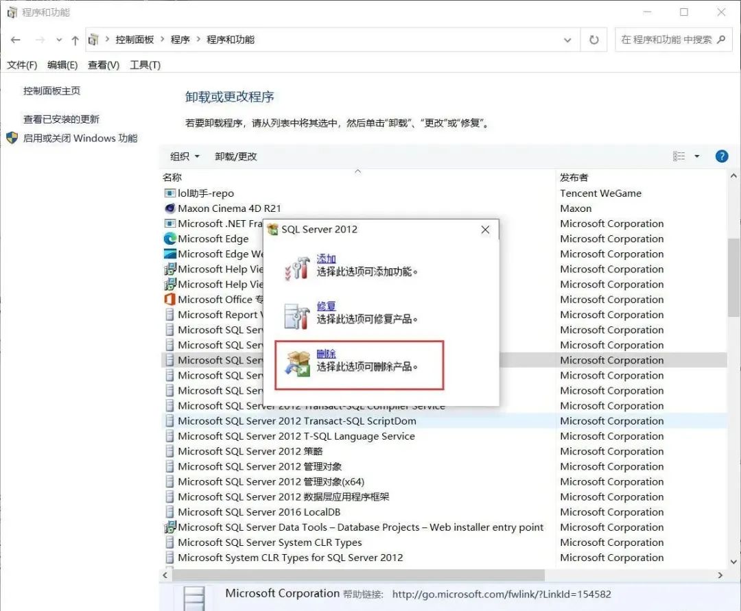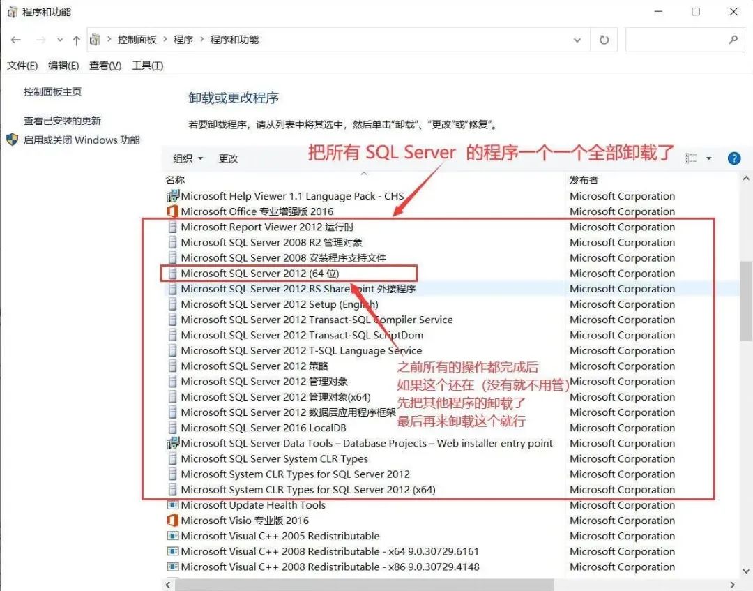 注:根据自己的电脑情况看,如果还有其他与 SQL Server 相关的项也要全部删除