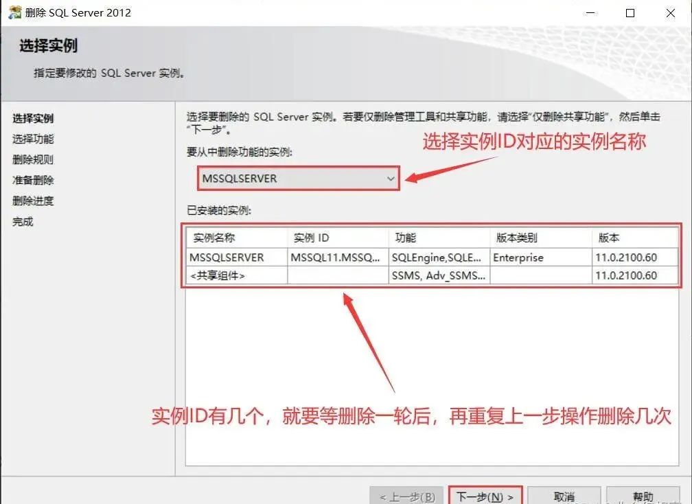 选择实例,点击【下一步】注:选择示例时,这里有多少个实例ID就删除多少次,如果有两个实例ID,删除完一轮后,需要重复一遍上一步的操作再回到这里再删除一遍,把实例一个一个全部删除!!!