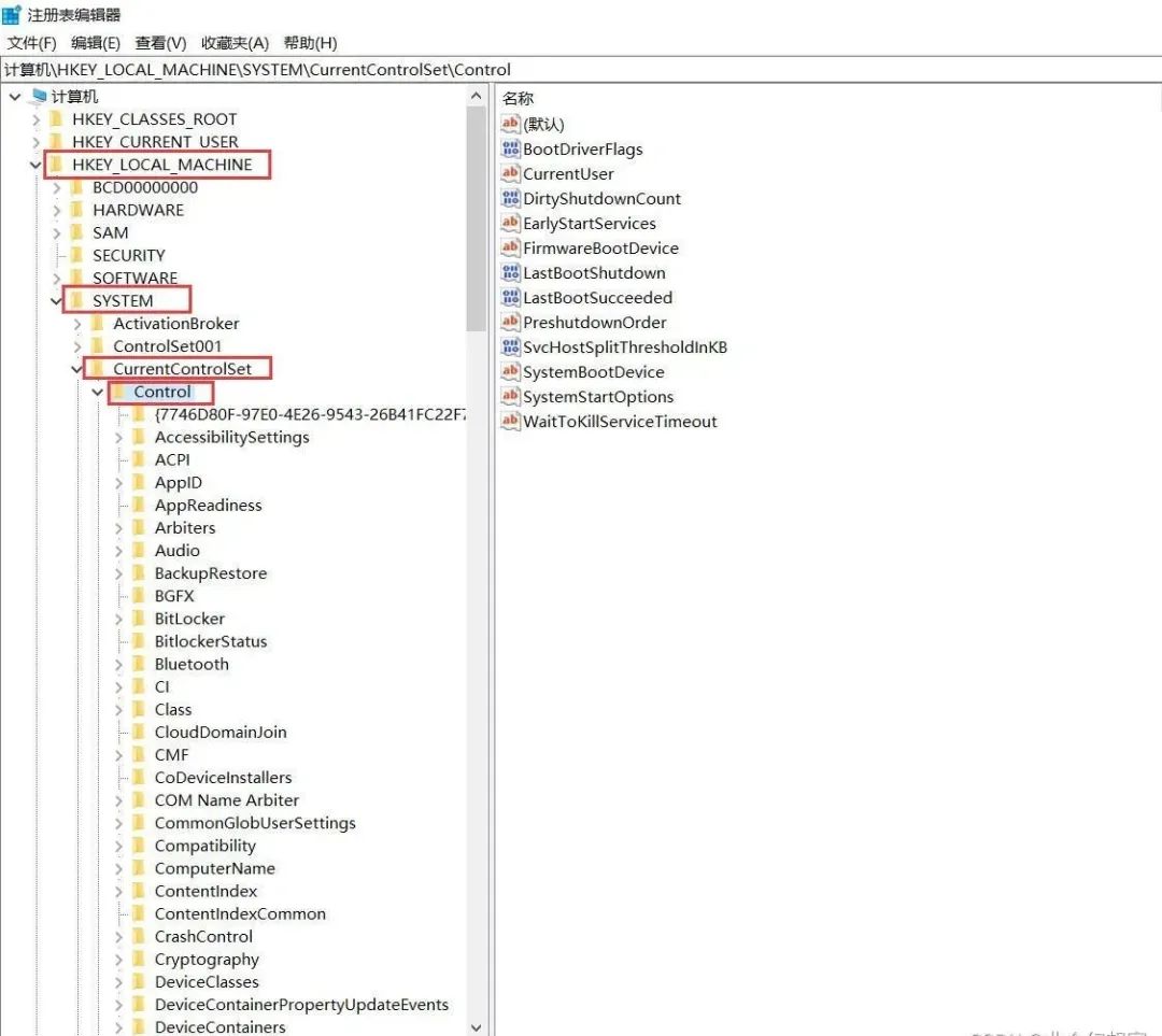 找到 HKEY_LOCAL_MACHINE \SYSTEM\CurrentControlSet\Control 并展开