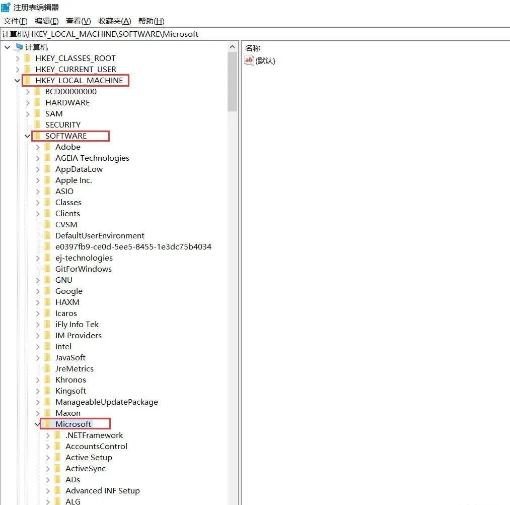 然后找到 HKEY_LOCAL_MACHINE \SOFTWARE\Microsoft 并展开