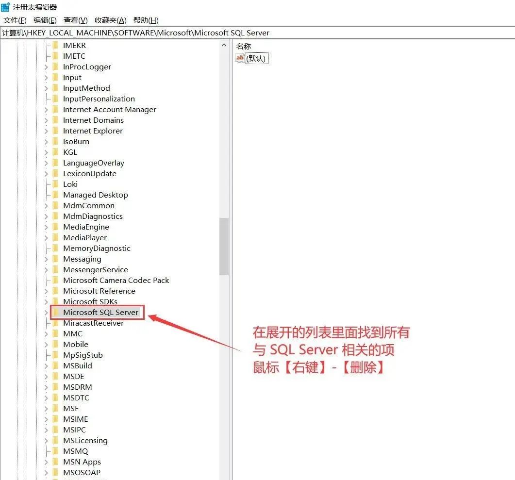 找到所有与 SQL Server 相关的项,鼠标【右键】-【删除】