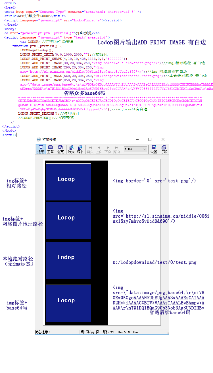 关于直接用base64码输出图片及用img+base64码输出图片的效果对比,可查看本博客另一篇相关博文:LODOP直接用base64码输出图片