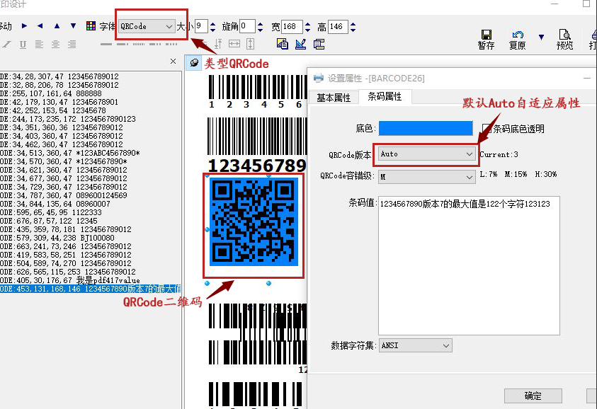 一、条码语句默认是Auto类型自适应宽度或高度,默认Auto属性,如下图。